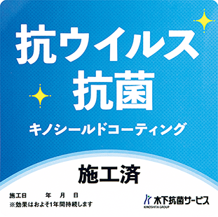 抗ウイルス・抗菌施工済の施設には、その証明としてステッカーをご提供しています。